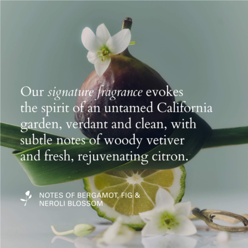 Fragrance Description:RZ’s signature fragrance evokes the spirit of an untamed California gardenverdant and greenwith the subtle aroma of warm, woody vetiver and fresh, rejuvenating citron. Inspired by the misty mountains of Big Sur, it contains notes of bergamot, vetiver, neroli, and fig.