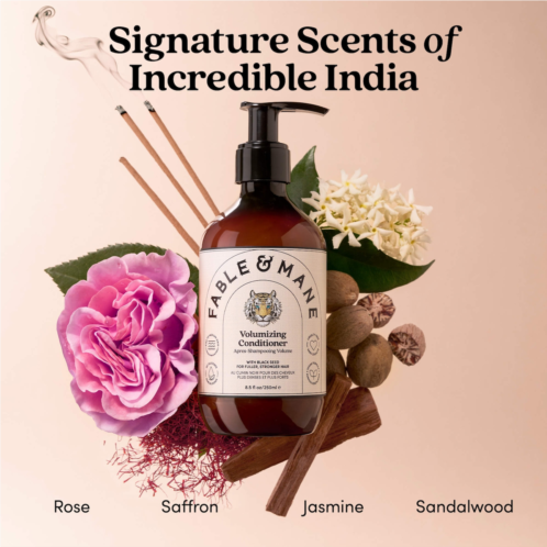 Fragrance Description:This volumizing conditioner has a majestically warm spice blend of Indian saffron and nutmeg, paired with midnight rose Damascena and Indian jasmine sambac, with a touch of incense and sandalwood for an unexpected richness and depth.