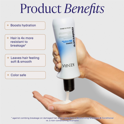 *Against combing breakage on damaged hair when using Kenra Moisture Shampoo and Conditioner versus a non-conditioning shampoo.