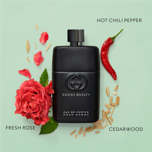 About the Fragrance: Gucci Guilty Pour Homme Eau de Parfum for Men reveals the Gucci Guilty collection’s signature fragrance with heady rose essence, sensual cedarwood, and an unexpected touch of chili pepper.
