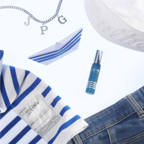About the Bottle: With his freedom at the helm and horizon-blue bottle, this irresistible seducer makes hearts throb wherever he goes. Sensual and athletic in his legendary Jean Paul Gaultier sailor top.