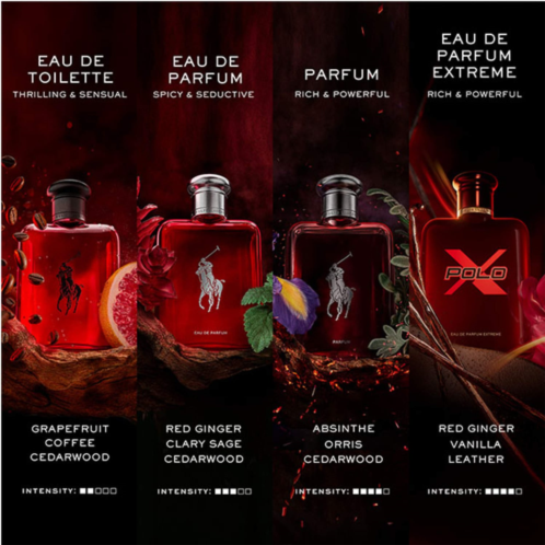 About the Bottle: Polo Red Extreme introduces the POLO X logoan emblem that epitomizes the franchise’s iconic spirit of speed. The sleek, sculptural bottle, finished in deep burgundy red with a luxurious gloss and topped with a striking red metallic cap, embodies modern power, daring elegance, and sophistication.