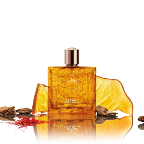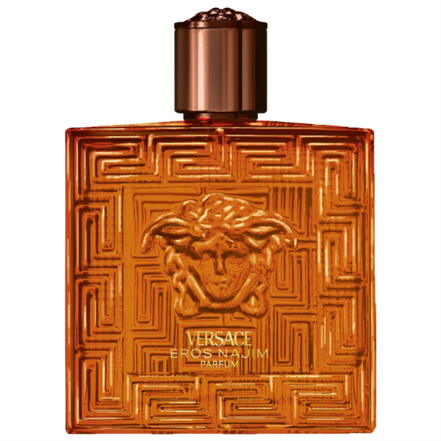 About the Bottle: Versace Eros Najim Parfum has a bottle with warm shadesa clear reference to the golden-amber color of the desert at sunsetand contemporary lines. The signature Versace Medusa is at the center of the bottle and the bronze cap is as refined as a precious jewel.