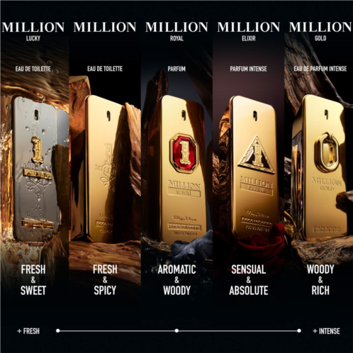 Notes of hazelnut, tart plum make the senses vibrate in this woody, sensual, and addictive fragrance. Life is a game! Create luck with ONE MILLION Lucky perfume.