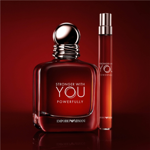 About the Bottle: The flacon features the iconic silhouette of Stronger With You fragrances, with a commanding red hue and smoky-toned juice. Its blackened silver cap, adorned with interlacing rings, symbolizes unity and togetherness.
