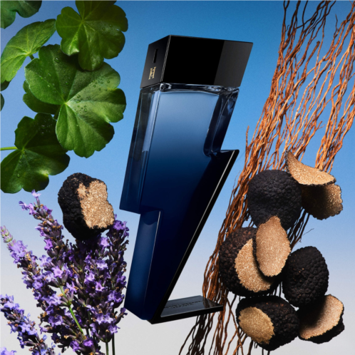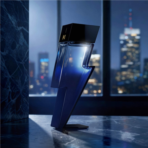 About the Bottle: A cobalt blue lightning-bolt bottle with black lacquer detailing embodies strength, elegance, and modern masculinity. Sculptural, bold, and magnetic, it mirrors the electric energy and woody intensity of the fragrancea striking symbol of confidence and vitality.