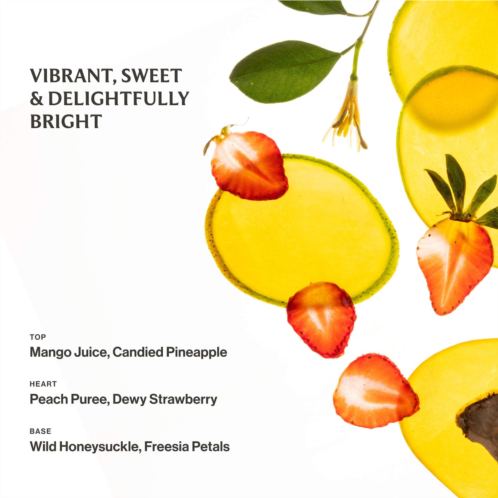 Fragrance Description: Vibrant, sweet, and delightfully bright. Fresh mango juice and candied pineapple intertwine with delicate notes of honeysuckle and freesia.