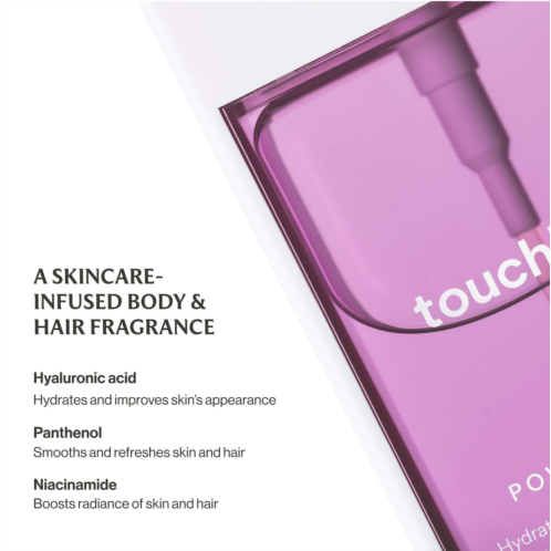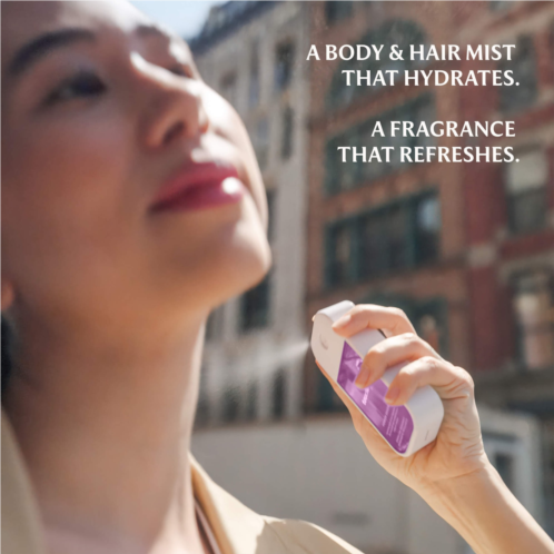 Key Notes:Sparkling Mandarin, Luminous Jasmine, Cashmere WoodsAbout the Bottle: This mist is capless for effortless portability and use. It is travel-friendly, perfect for life on-the-go.About the Fragrance: This uplifting fragrance experience is designed to move your mood. The skincare-infused formula with hyaluronic acid, niacinamide, and panthenol leaves your skin and hair hydrated, refreshed, and smooth.