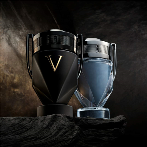 About the Bottle: Introducing the INVICTUS Trophy: A Symbol of Victory. Celebrate a new era of triumph with the redesigned INVICTUS trophy. Its ultra-sculpted V shape, inspired by black volcanic stone, exudes power. The matte-black bottle contrasts with a glossy black cap, representing the perfect blend of freshness and sensuality in the fragrance inside. Topped with a gold V, this trophy is the ultimate symbol of victory.