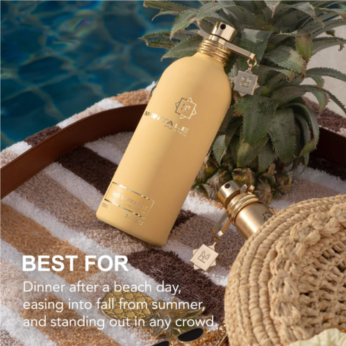 Fragrance Description: A bright burst of pineapple mingles with a kiss of oud and a rich opulence of saffron. Your endless summer awaits. The fragrance lingers on your skin with a base of sweet vanilla, an irresistible creamy coconut, and the iconic Montale white musk, perfect for a day at the beach and long, hot nights.