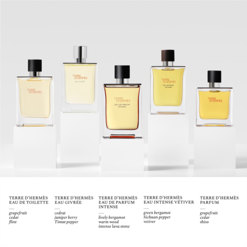Fragrance Description: Terre d’Hermes Eau de Parfum Intense is a deep, woody fragrance that combines fiery bergamot with burning wood, underpinned by the mineral notes of intense lava stone.