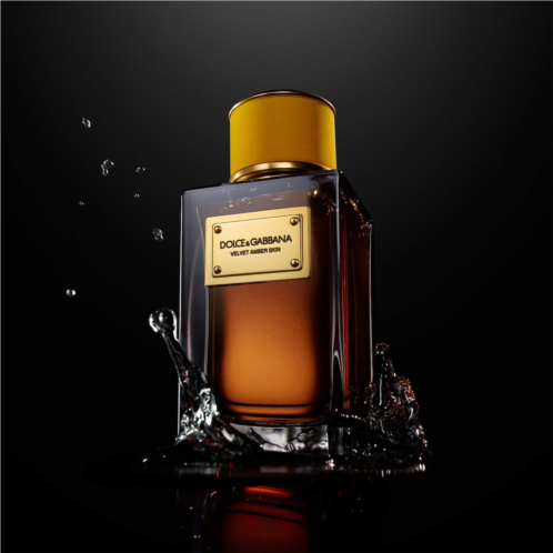 About the Bottle: The iconic, weighty glass flacon of the Dolce&Gabbana Velvet Collection is topped with a yellow velvet-trimmed stopper with golden accents. The flacon of Dolce&Gabbana Velvet Amber Skin Eau de Parfum is also personalized with an engraved golden plate and comes encased in a black velvet coffret.