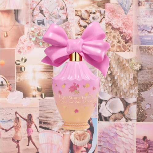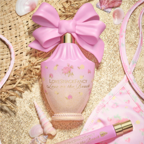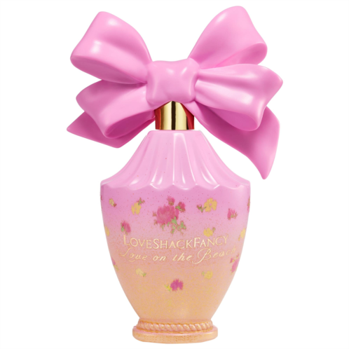 About the Bottle: Here’s an oversized bow, perfectly imperfect. The LoveShackFancy perfume bottle references founder Rebecca Hessel Cohen’s lifelong love of bows and ribbons with a sculptural bow top that appears tied and tightened by hand. The Ikat Rose print is a signature design chosen from over 2,000 in the LoveShackFancy print and lace library to decorate the gold glitter and sunset ombre bottle, a softly curved antique-inspired vessel carved with scalloping on top and a ring of rope on the bottom. Once finished, its spray top is removable so the bottle can be upcycled as a bud vase.