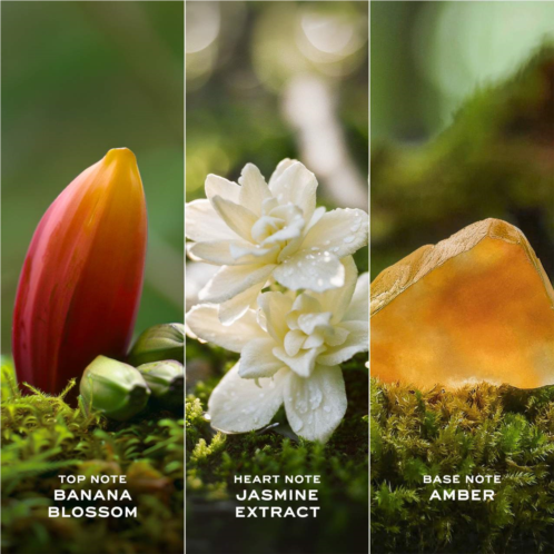 Fragrance Description: An unforgettable escape into a floral wonderland, this eau de parfum for women opens with the soft, exotic essence of banana blossom. Blending harmoniously with the florality of jasmine extract, amber, and sandalwood create a warm base that ignites a sense of wanderlust.