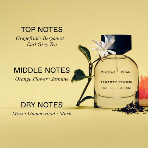 Fragrance Description:Windows Down embodies the crisp and invigorating sensation of an open-air road trip. A fresh citrus scent perfume, it's infused with zesty notes of bright grapefruit and bergamot, and a hint of Earl Grey tea, invoking a subtle and casual elegance.About the Bottle: Henry Rose crafted their bottles to be genderless, modern, and minimal. Their 50ml bottles are made from 90% recycled glass, caps are made from fully compostable soy resin, and cartons are made from biodegradable FSC hemp paper.
