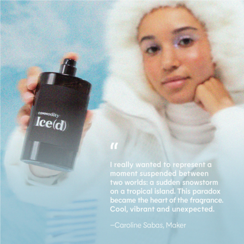 About the Fragrance: \'I wanted to represent a moment suspended between two worlds: a sudden snowstorm on a tropical island. This paradox became the heart of the fragrance. Cool, vibrant, unexpected. Ice(d) Expressive is a celebration of contrasts, where mango, eucalyptus, and spearmint collide.\'Caroline Sabas, Maker