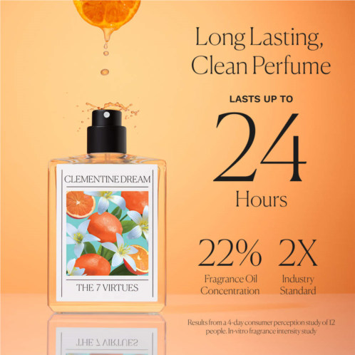About the Bottle: When you smell good, you feel good, and that's why each perfume from The 7 Virtues delivers aromatherapy benefits, written on the back of the bottle. Clementine Dream is best for improving focus, energizing, and inspiring creativity.