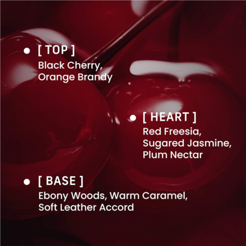 Fragrance Description: This warm and wooded cherry fragrance is a fruity floral with a cocktail of juicy, dark, and lacquered fruitsserved with a twist. Black cherry and lush plum nectar layer with ebony wood and sugared jasmine for a bold, yet sweet depth. Hints of leather and a spike of citrus develop into a cherry that’s anything but innocent. Wear it when you want to leave an irresistible pull.