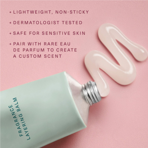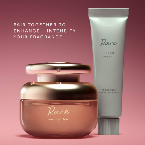 Fragrance Description: This balm was designed to be worn alone or layered with Rare Eau de Parfum to add a bright, breezy layerevoking an uplifting moment as it melts into skin and lasts up to 12 hours. Cool, vibrant, and energizing, it acts as a perfume enhancer, giving it a new dimension while intensifying your fragrance.
