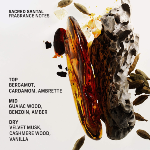 About the Fragrance: Sacred Santal opens with the subtle spiciness of cardamom and bergamot before settling into a luxurious base of velvet musk and creamy cashmere wood. The finish is irresistibly cozy.