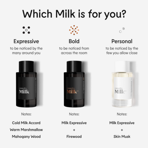 About the Bottle: The Expressive Collection comes in Commodity’s black-and-white bottlebalanced in design and projection, meant to be noticed by the many around you. See also Milk- Personal for an intimately-projecting take and Milk+ Bold for a powerhouse take on the marshmallow fragrance.