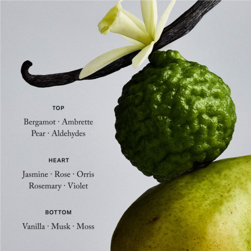 Fragrance Description: This long-lasting, clean fragrance opens with soft, bright notes of bergamot and pear, gently unfolding into a floral heart of jasmine, rose, and violet. It’s balanced by a base of vanilla, musk, and moss, giving it a warm, second-skin finish that wears for up to over 12 hours.