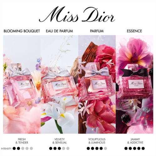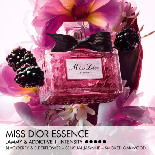 Fragrance Description: This addictive floral fragrance is both surprising and captivating, blending jammy blackberry, elderflower, and jasmine over dense, enveloping oak. A bold chypre, Miss Dior Essence is intense and unapologetically femininecrafted for a new generation of free and fearless women.