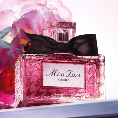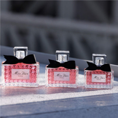 About the Bottle: Staying true to its iconic heritage while embracing a modern twist, Miss Dior Essence is housed in a reinterpretation of the heritage bottle first designed by Christian Dior in 1948. A frosted houndstooth motif lends timeless elegance, while a black couture poignard bow, made in France, adorns the glass cap.