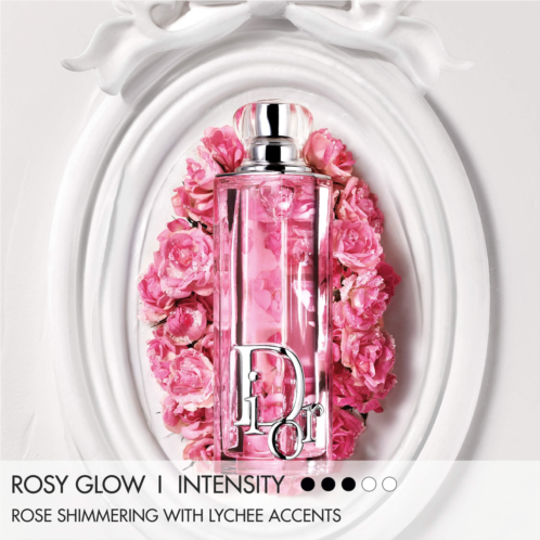Fragrance Description: Sparkling and delectable, Dior Addict Rosy Glow eau de parfum evokes an olfactive confection. Notes of Damascus rose highlight bright lychee accents, all wrapped in a creamy, caramel glaze.