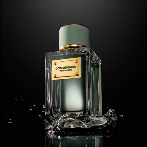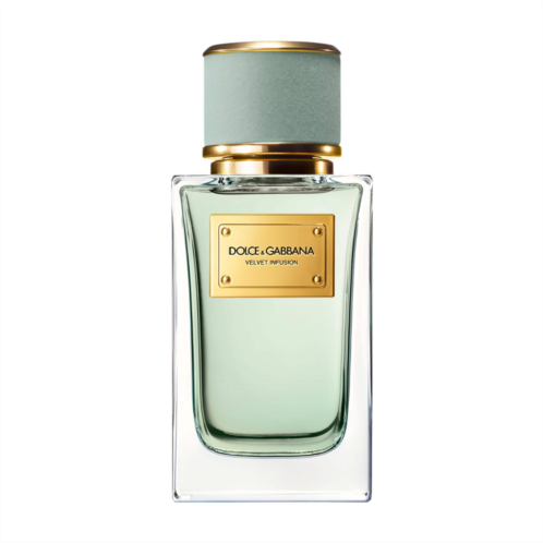 About the Bottle: The iconic, weighty glass flacon of the Dolce&Gabbana Velvet Collection is topped with a pastel-green, velvet-trimmed stopper with golden accents. The flacon of Dolce&Gabbana Velvet Infusion Eau de Parfum is also personalized with an engraved golden plate and comes encased in a black velvet coffret.