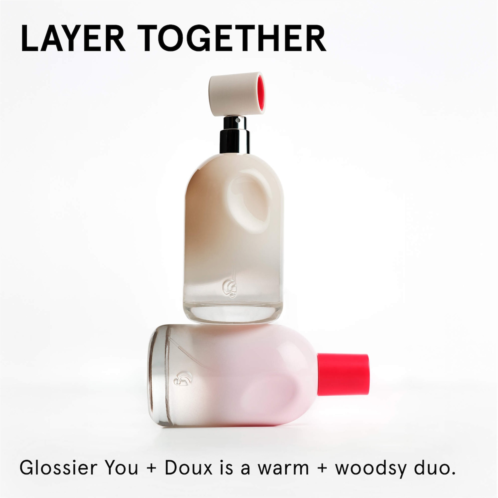 Fragrance Description: Glossier You Doux is a soft, skin-scent-enhancing, woody fragrance that opens with sweet violet followed by a precious blend of woody palo santo, frankincense, and smoky myrrhheightened by a warm, musky base driven by ambrox.