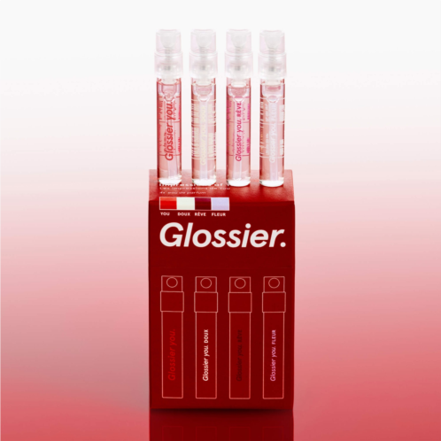 - 4 x 0.05 oz/ 1.5 mL fragrances in Glossier You, Glossier You Fleur, Glossier You Doux, Glossier You Reve