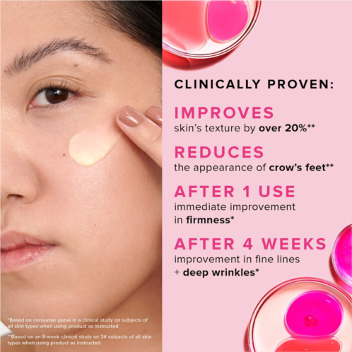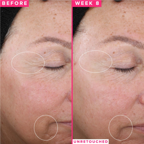 - Reduce the appearance of crow’s feet lines + wrinkles