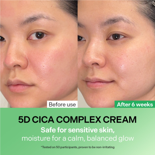 - 5D CICA Complex: Contains five types of centella to calm, care for, and strengthen skin.