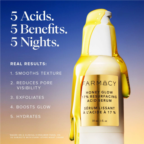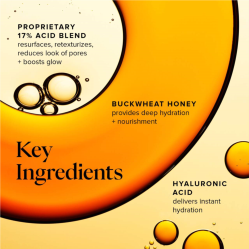 What Else You Need to Know: Powered by a 17 percent acid blend, this potent night serum is clinically proven to visibly boost your glow and smooth skin overnight. AHA/BHAs exfoliate and visibly reduce pore size while hyaluronic acid and antioxidant-rich buckwheat honey keep skin hydrated to reveal a radiant glow.