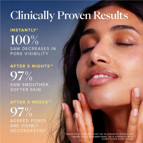 What it is: An exfoliating AHA/BHA night serum clinically proven to smooth texture and reduce the look pores, revealing glowing skin by morning. Features 5 acids to deliver 5 benefits in just 5 nights!