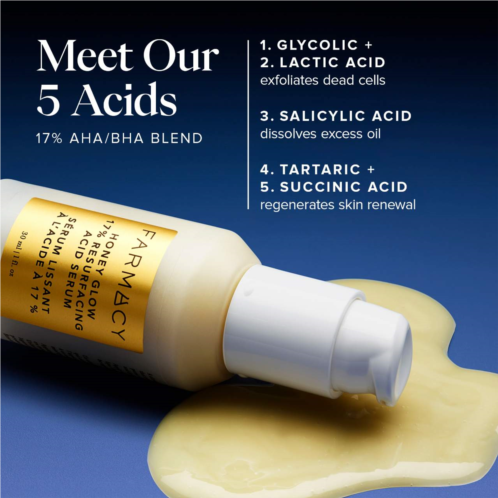 - 17% AHA/BHA Acid Blend: Exfoliates, smooths texture and visibly reduces pores.