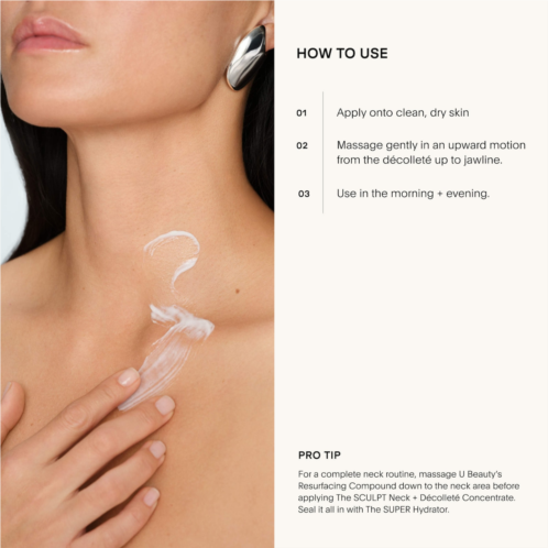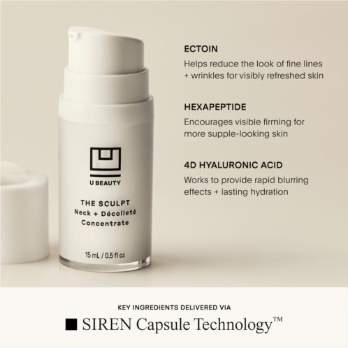 What Else You Need to Know: A multilevel concentrate designed to help contour and soften the look of fine lines, visibly improving the appearance of thin, crepey skin, on the neck, chest, and jawlinefor comprehensive age-defying results. This hydrating formula helps support the look of skin firmness, providing rapid blurring effects. With continued use, skin feels smoother and looks more refined. Every U Beauty formula is powered by proprietary SIREN Capsule Technology, U Beauty’s adaptive delivery system that revolutionizes the way ingredients interact with your skinfor customized treatment and transformative results.