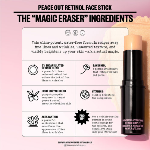 What Else You Need to Know: This super-concentrated face stick contains a 3% encapsulated retinol blend to diminish the look of fine lines and wrinkles and a fruit enzyme blend that combines papaya and pumpkin enzymes to target pores and reveal brighter-, smoother-looking skin.