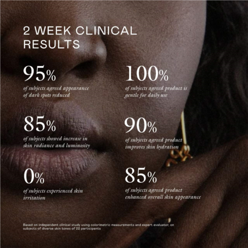 What it is: A fragrance-free serumuniquely formulated for skin of colorthat rapidly reduces visible dark spots, hyperpigmentation, and post-acne marks while bestowing a healthy-looking glow.