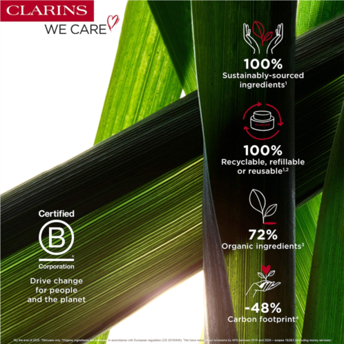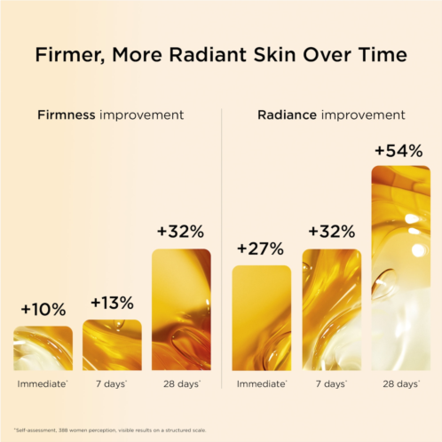 - Organic Harungana extract + Peptides: Renew for visibly firmer, smoother, plumper skin.