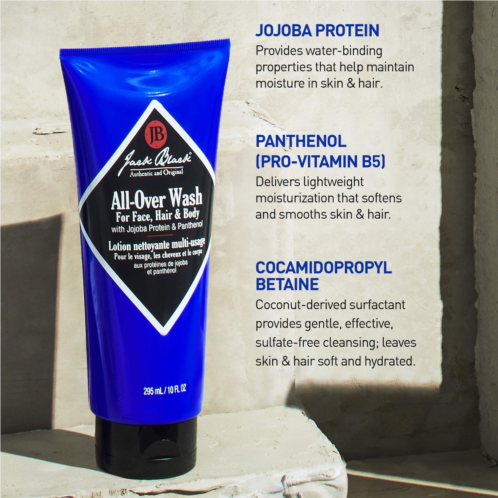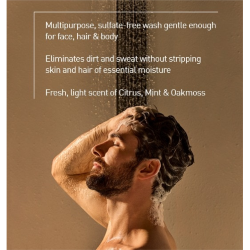 All-Over Wash For Face, Hair & Body provides a luxuriously, foaming lather to remove sweat and dirt, without stripping away natural oils that keep skin and hair healthy. Gentle enough for all skin types, wheat protein and panthenol provide water-binding properties that help maintain essential moisture.
