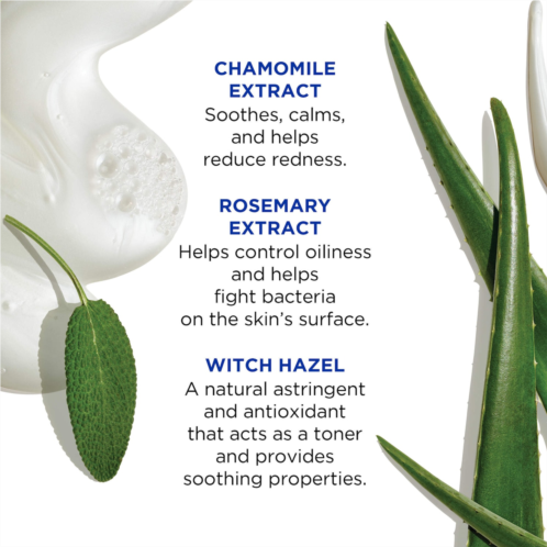 Pure Clean Daily Facial Cleanser works gently without over-drying to leave your complexion clean, hydrated, and fresh. Witch hazel acts as an astringent, toner, anti-irritant, and antioxidant. Oat- and coconut-derived, sulfate-free surfactants effectively cleanse the skin, while certified organic sage leaf and rosemary provide antibacterial benefits. Certified organic chamomile and aloe leaf help soothe and reduce redness. This product will work into a rich lather to gently and effectively remove dirt and debris without irritation or dryness. The result is clean, clear, smooth skin.