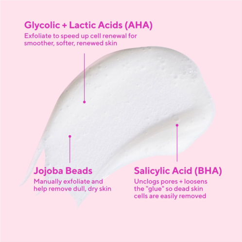 - Jojoba Beads: Manually exfoliate to remove dry, dull-looking skin.