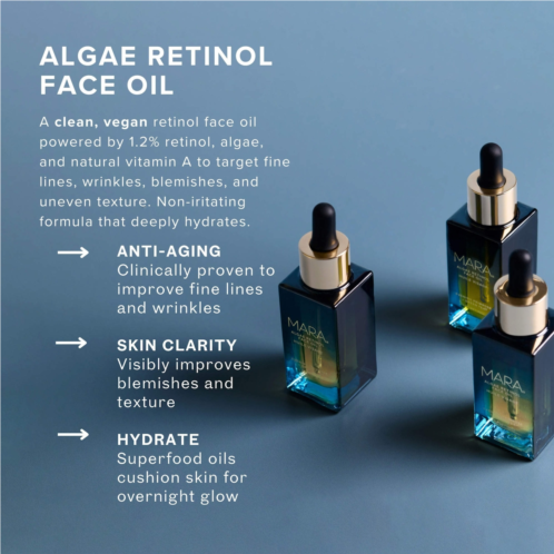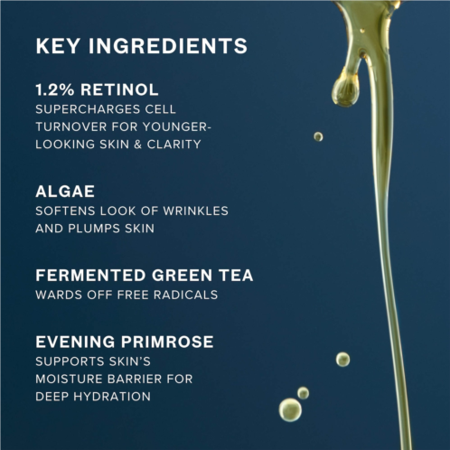 What it is:A clean, vegan retinol face oil powered by 1.2% retinol, algae, and natural vitamin A to target fine lines, wrinkles, blemishes, and uneven texturevisibly improving clarity, radiance, and skin tone overnight.