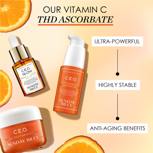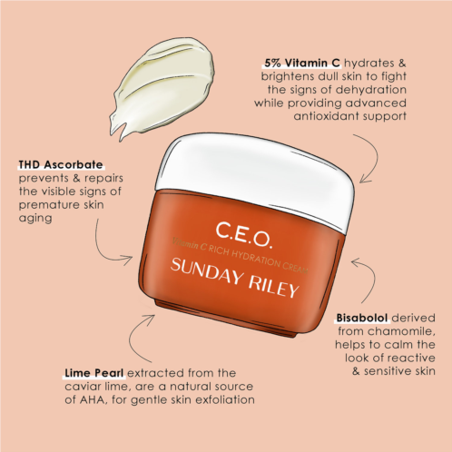 Luxuriously hydrating and scientifically advanced, C.E.O. provides fast-absorbing moisturization without greasiness?protecting during the day and visibly repairing at night. It is enriched with five percent powerful, lipid-soluble, advanced vitamin C (tetrahexyldecyl ascorbate, the most superior form), which is more stable and less irritating than ascorbic acid and other vitamin C derivatives. Blended with protective, anti-pollution exopolysaccharides and refining lime pearl extract, C.E.O. moisturizes your skin, visibly brightens, supports natural collagen, provides antioxidant support, and expertly fights the five visible signs of environmental and micropollution-induced skin damage: sensitivity, dehydration, dullness, uneven tone, and premature lines and wrinkles.