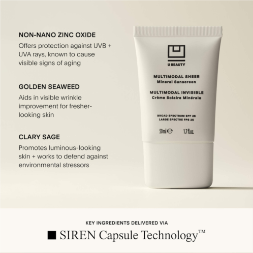 What Else You Need to Know: Science-backed suncare meets blurring skincare for multiplex benefits. This ultra-lightweight mineral-based shield is your broad-spectrum SPF filter against UVA and UVB rays. It also acts as an airbrush-effect primer, helping to promote a visibly brighter, even-looking complexion with preserved luminosityand a priming makeup base. Every U Beauty formula is powered by proprietary SIREN Capsule Technology, U Beauty’s adaptive delivery system that revolutionizes the way ingredients interact with your skinfor customized treatment and transformative results.
