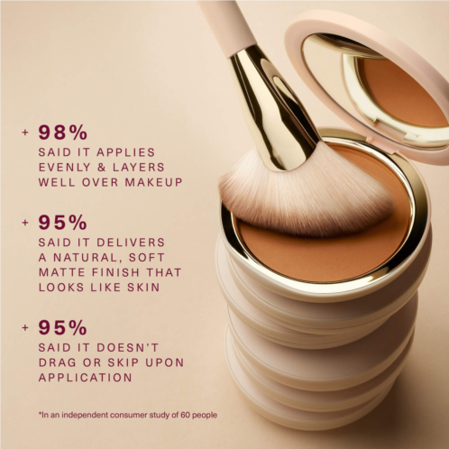 What Else You Need to Know: This ultrasmooth powder bronzer glides on like butter and blends like a dream (with zero fallout) for sunkissed warmth, anytime. Infused with tomato seed oil, the weightless, breathable formula builds easily, wears evenly all day without caking or creasing, and keeps skin soothed and fresh.