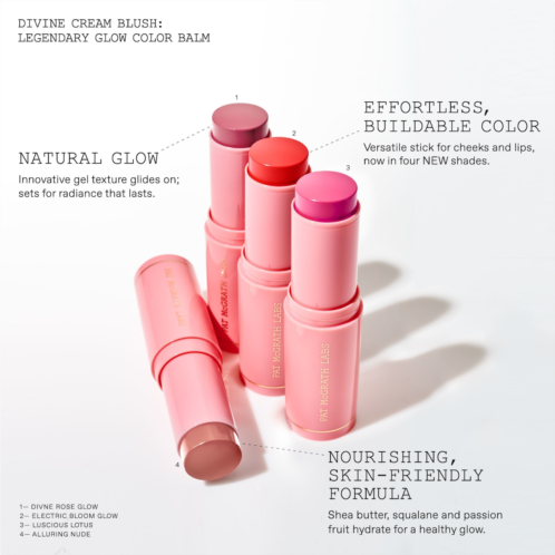What Else You Need to Know: This versatile, nongreasy formula suits all skin tones, ensuring the perfect touch of color. Enriched with shea butter, squalane, and passion fruit extract, Divine Blush: Legendary Glow Colour Balm keeps your complexion smooth and supple. Its glossy finish delivers a lustrous, radiant reflection.