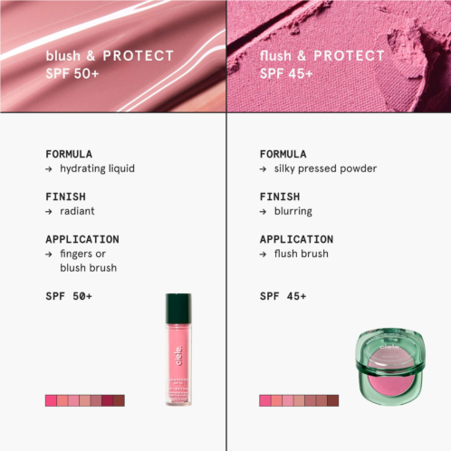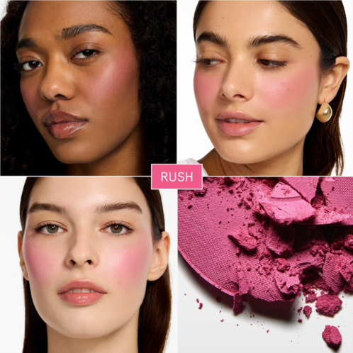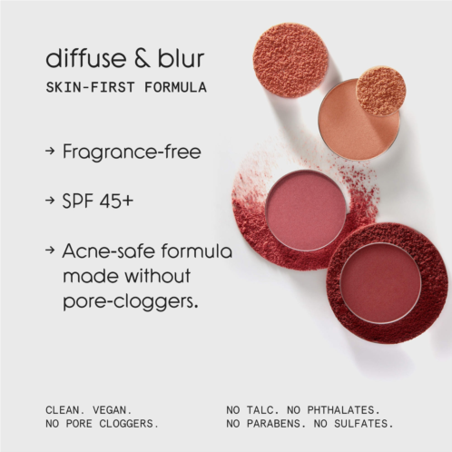What it is: A talc-free hybrid SPF 45+ powder blush that diffuses a radiant flush of color onto the cheeks with a silky, blurring finish.